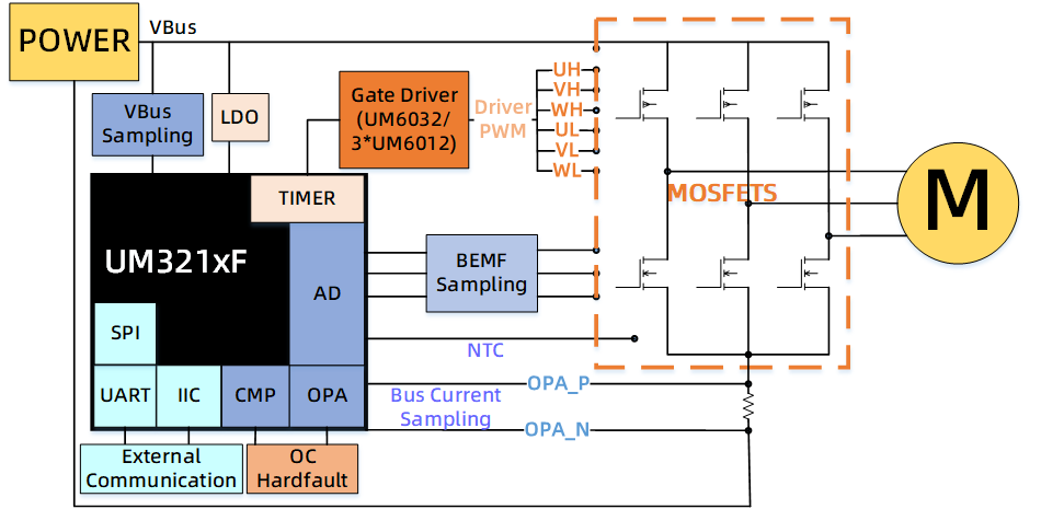 支持單/雙電阻無/有感FOC控制方案 輸入電壓:DC 12-48V 額定功率:<500W 防電源反接電路設(shè)計 支持PWM調(diào)速及FG信號反饋 順逆風(fēng)啟停 硬件過流,欠過壓,欠過溫,限/過流,堵轉(zhuǎn)等全功能保護(hù)