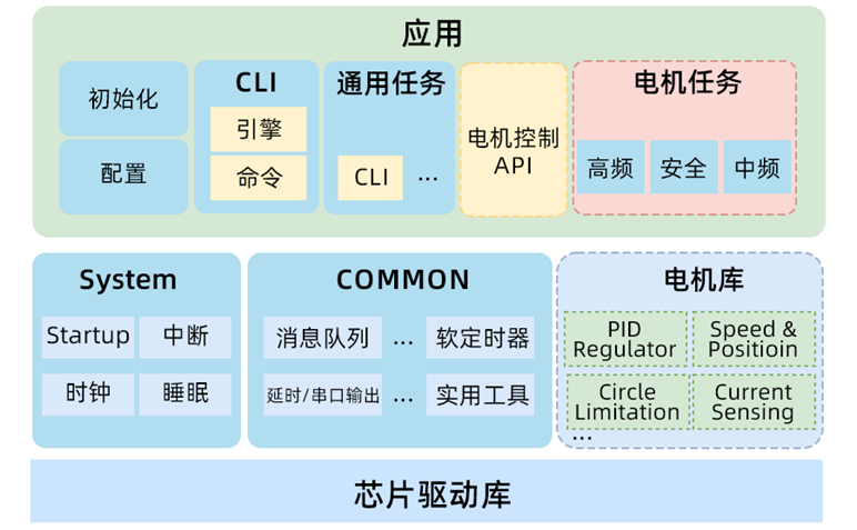 4.分層設(shè)計的軟件架構(gòu),豐富且成熟的電機(jī)算法庫,降低開發(fā)設(shè)計難度及技術(shù)門檻。