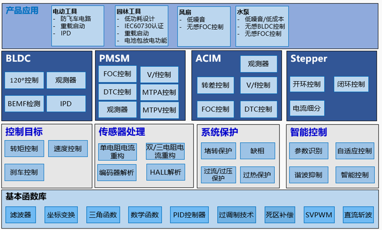 4.分層設計的軟件架構,豐富且成熟的電機算法庫,降低開發設計難度及技術門檻。
