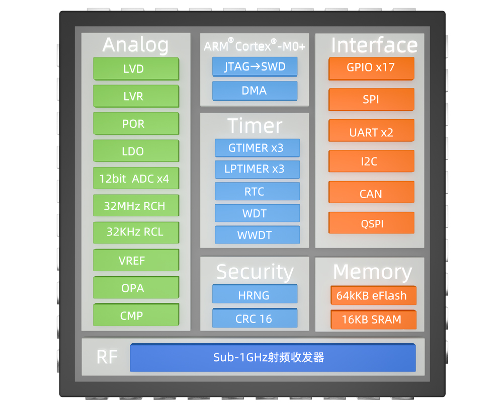· 32 位 Cortex-M0+,最高32MHz主頻