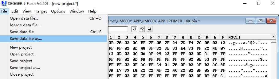 打包成功后。點擊軟件左上角File,選擇Save data file as..將打包好的程序進行保存,保存的格式為bin或者hex。