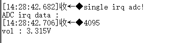 ⑥之后會運行用戶的程序。(可以通過串口工具打印信息看到,通過IAP升級更新已將原來打包時的Lptimer應用程序更換為ADC功能應用程序。)