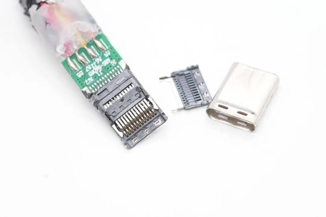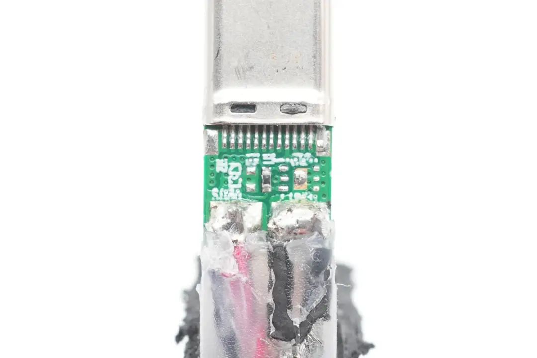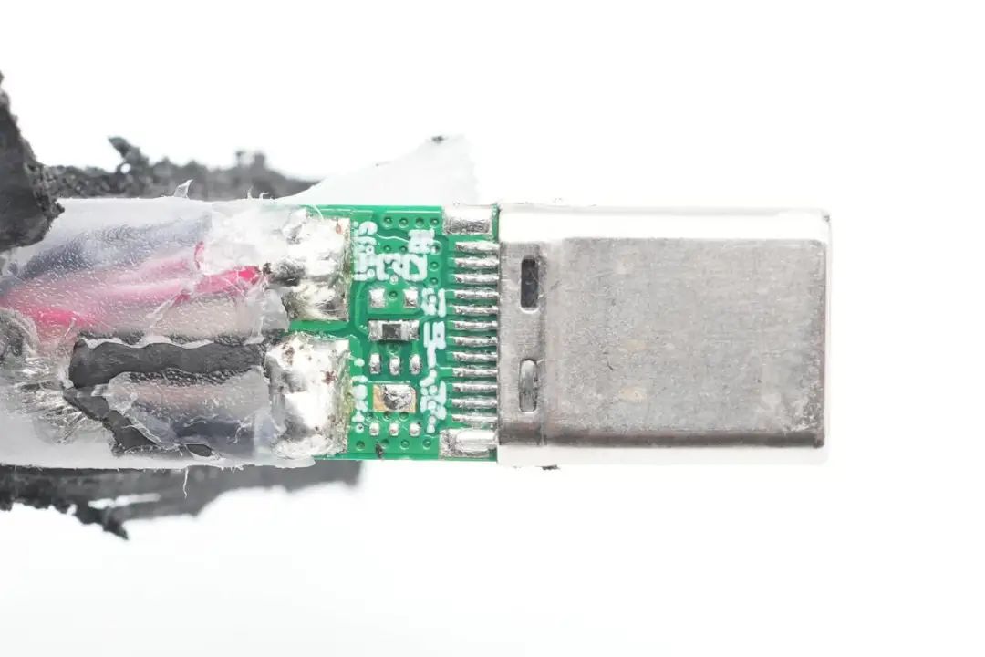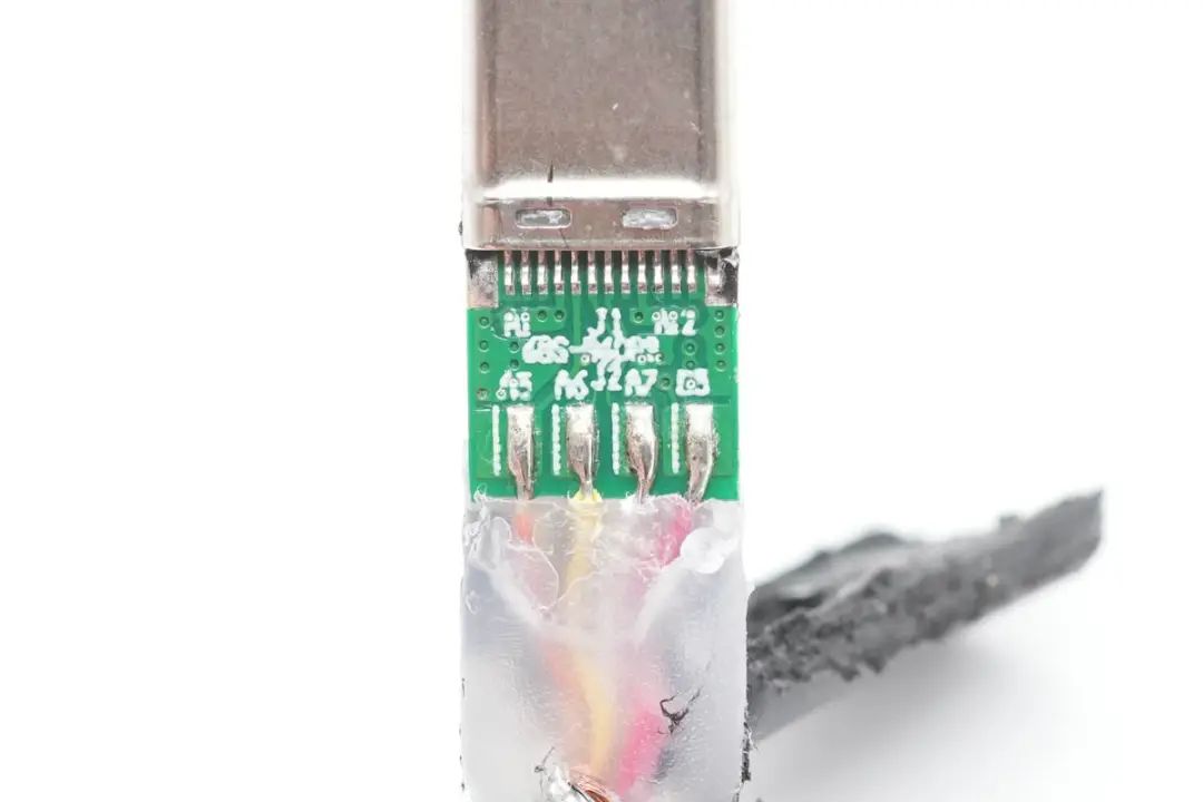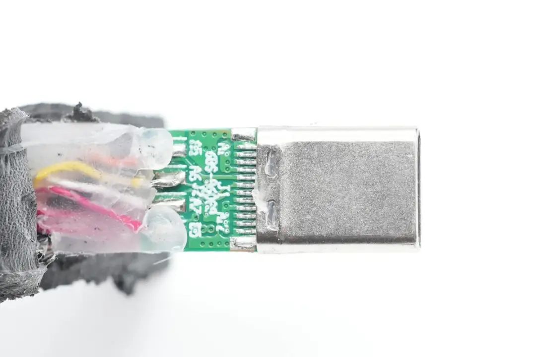 線纜另一頭也是同樣的焊接,焊接USB數據線和CC以及VCONN數據線。