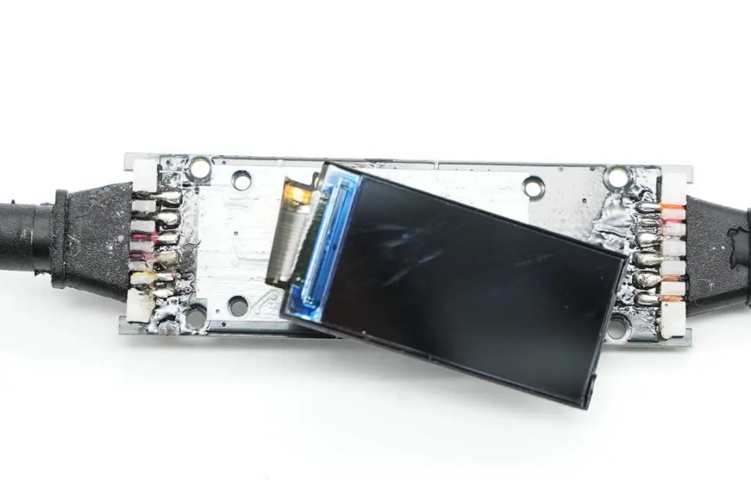 0.96英寸屏幕通過排線焊接連接到PCBA上。
