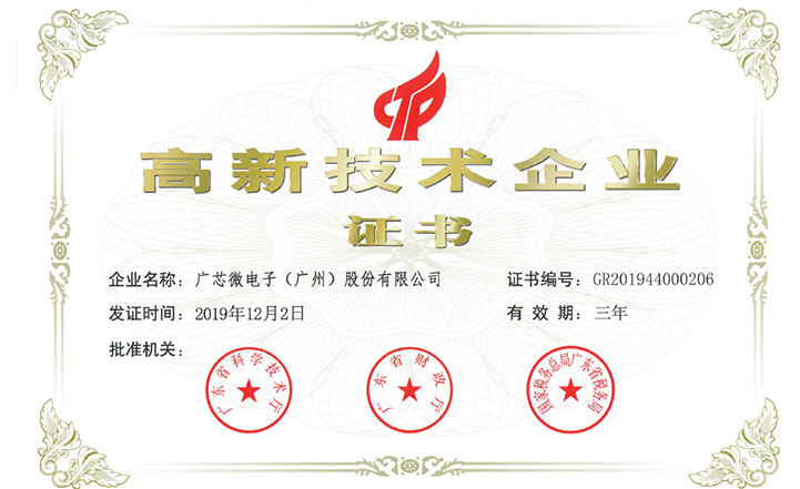 成立僅2年獲批成為廣東省2019年第一批高新技術企業(yè),不僅標志著政府管理職能部門對廣芯微電子的科研能力、技術水準和未來發(fā)展?jié)摿Φ某浞挚隙ê透叨日J可,也激勵廣芯微電子繼續(xù)提高自身產品的核心競爭力,提升在集成電路領域內的可持續(xù)創(chuàng)新與發(fā)展能力。